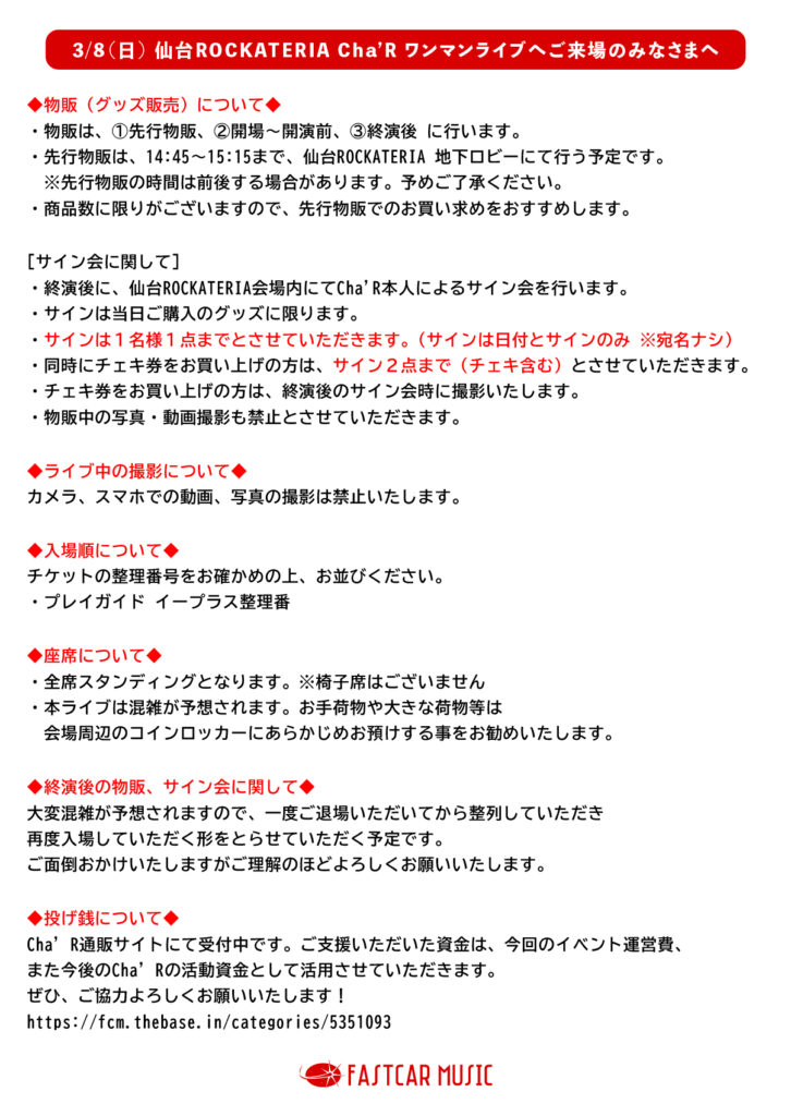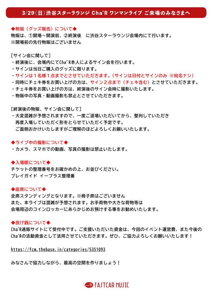 【Cha’Rの出演日時・場所】